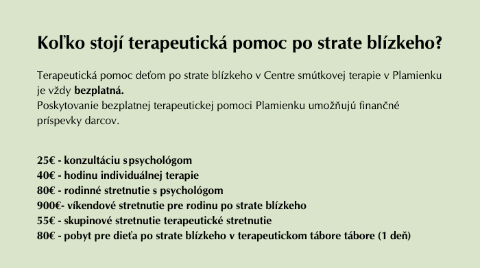 Simonka stratila tatina náhle, pri tragickej nehode. O svojom smútku odmietala hovoriť. „Predtým bola úplne neprístupná spomienkam na neho. Dokonca som jej zobrala z izby tatinove fotky. Snažila som sa od nej získať nejakú reakciu. Nič. Vôbec na to nezareagovala. Keď sme pozerali fotky v telefóne či na tablete, fotky s ním len rýchlo prelistovala, aby ich ani nevidela. Teraz si už pozerá aj fotky s tatinom, sama chcela, aby som jej ich vyložila znovu na poličku. Vybrala si takú, ktorú si chcela pripnúť na stenu. Má odložené veci, ktoré ju s ním spájajú, napríklad kamienky z výletov. Tie niekedy vyberá, otvorila sa pre dobré spomienky. Už to dokáže," konštatuje jej mama Ivana. „Ja viem, čo strata pre mňa znamenala psychicky, ekonomicky, citovo... ale dieťa to nevie. Ono má v sebe len prázdne miesto a nevie si pomôcť. Terapeuti Plamienka sú odborníci a oni sú tí, ktorí mu pomôcť dokážu. Vedia deti naviesť, ako sa otvoriť tomu peknému a najmä dať im pocit, že v tom nie sú sami. Ukázať im, že sa nemusia hnevať, že nemajú prečo obviňovať rodičov, či iných ľudí zo svojej straty. Nie je to ľahká cesta. Nikto z nás si ju nevybral, dá sa ňou však ísť. Po čase už dokážeme vnímať, že existujú aj príjemné veci a zážitky a tešiť sa z nich. A v tom deťom pomáha smútková terapia v Plamienku.”